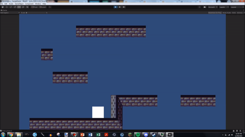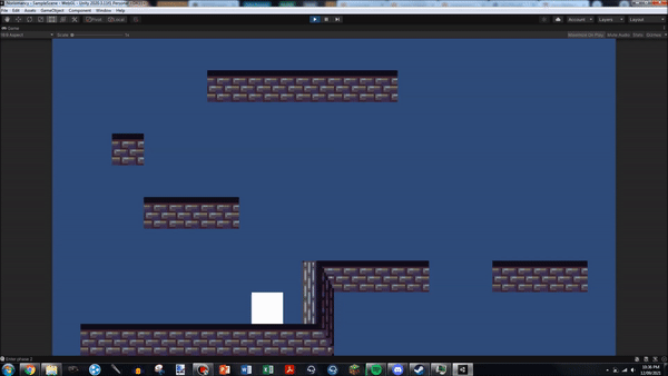 I am still considering how to fix the edge case of a player jumping, and thus becoming not grounded, and then landing on the very edge of a platform, such that their ground detecting collider does not trigger, and thus they are unable to jump, even though they have landed. I am unsure of how to fix this, but I imagine I may need to rewrite the system entirely.