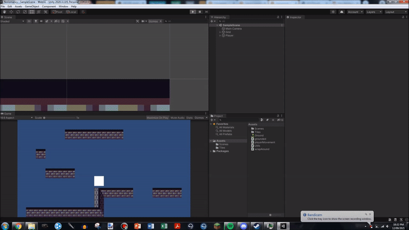 There's also a very basic script attached to the player to move the player back onto the screen opposite the place they left. This isn't an actual feature, mind, but it was a very quick way to prevent excessive reloading during playtesting.