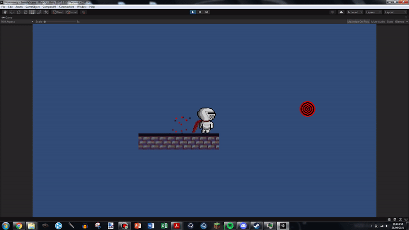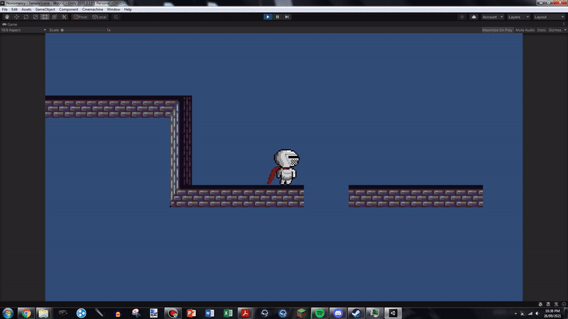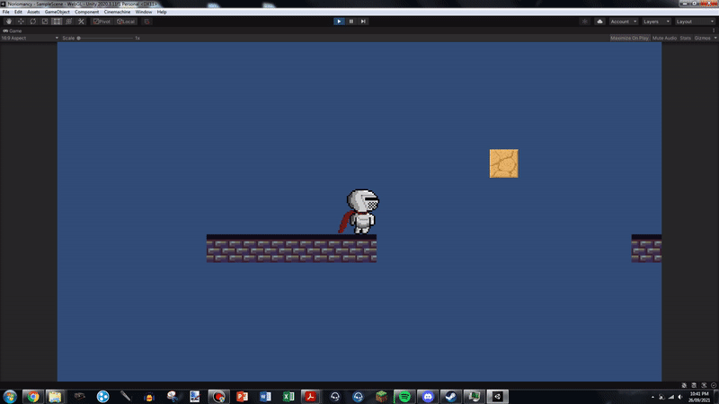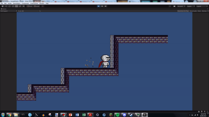 Also worth noting is that I've implemented sandstone blocks which extend the player's dash if they dash through them! It took ages to get the blocks to be solid, but also not briefly stop the player when they were dashing through. I got there, though! Also, the sand blocks are setup so that they will respawn after a customisable amount of time, making it so that you can't brick puzzles or get yourself stuck.